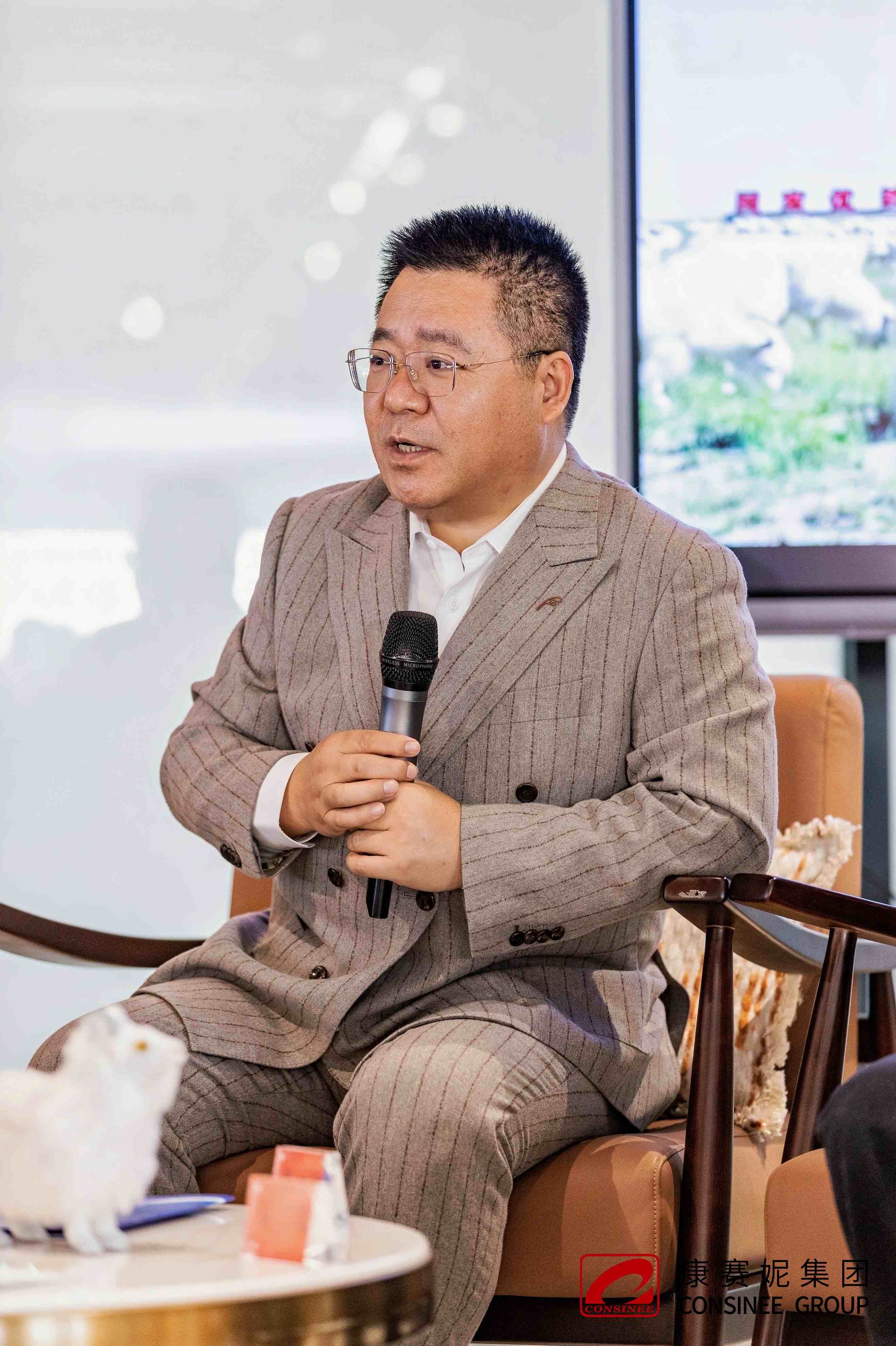 20日下午,“二狼山白绒山羊全产业链高质量发展草原论谈”盛大召开。此次论谈汇聚了内蒙古自治区及巴彦淖尔市等各级政府部门、科研院校以及羊绒行业上下游知名企业,康赛妮集团受邀出席。从产地牧民到原料加工、产品制造、品牌销售的全产业链代表齐聚,旨在通过对话交流推动产业协同发展。康赛妮集团董事长、总裁薛惊理受邀在全产业链论谈上发言,并在重点议题探讨中,围绕“原料品质持续提升的重要性和方法”发表重要讲话。他表示,康赛妮作为深耕奢侈品纱线和面料领域的代表企业,多年来在原料把控上精益求精,我们深知羊绒原料品质是整个产业发展的生命线,牵系着全球市场的供需格局与产业未来走向。薛董强调,优良品种保护改良是长期战略,导入第一产业牧场的现代化经营管理对于提升原料品质具有关键作用。此次发言不仅分享了康赛妮在提升原料品质方面的经验,更为整个行业提供了可借鉴的思路。会议上,鄂尔多斯、无印良品等企业为行业发展建言献策,农牧研究院等单位也表示积极为农业、牧业、种业的高质量发展提供技术支持,携手共促行业发展。