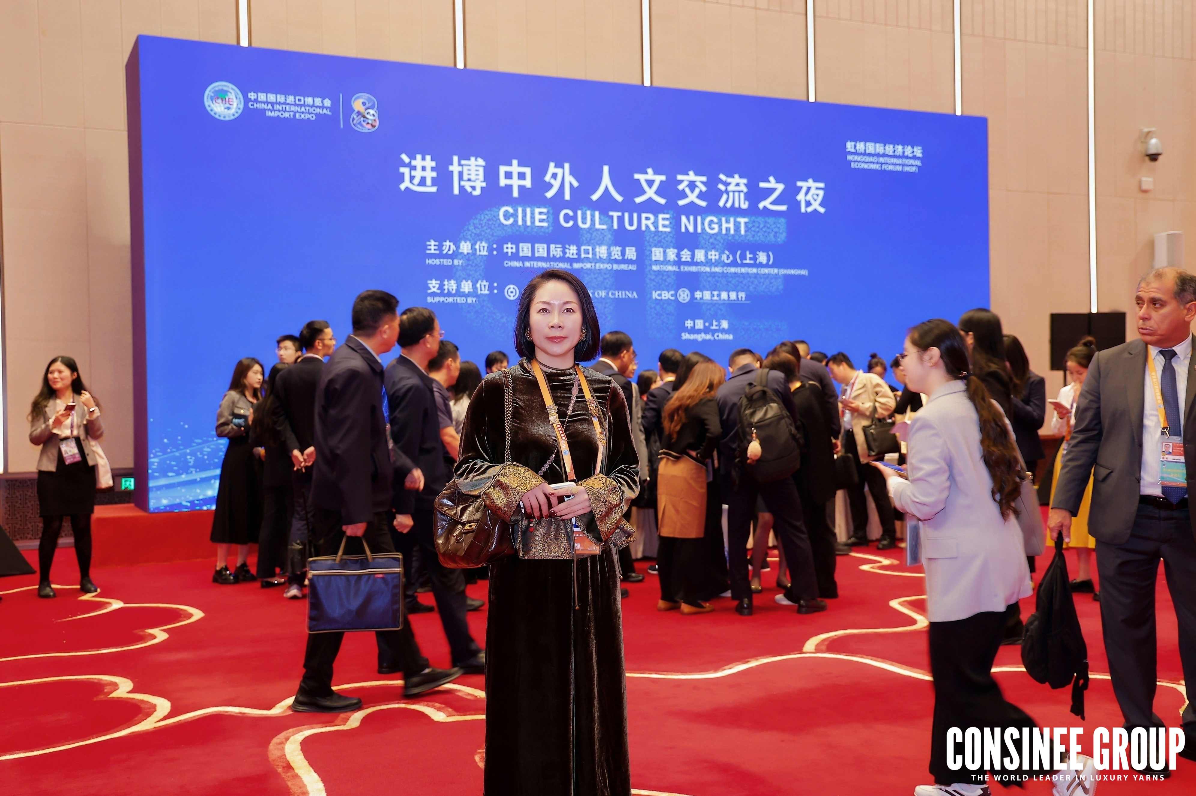 康赛妮集团受邀出席在国家会议中心(上海)金色大厅举办的“进博中外人文交流之夜”,与全球政商精英、文化名流共赴这场中外文明互鉴的盛会,成为全场瞩目的中国力量!第九届进博会签约仪式上,康赛妮集团正式锁定下一届参展席位!“进博是中国的,更是世界的!它不仅让全球看到中国品质,更让中国品牌链接世界机遇!我们期待在这里与更多全球伙伴携手,让中国奢品纱线走向更广阔的世界。”