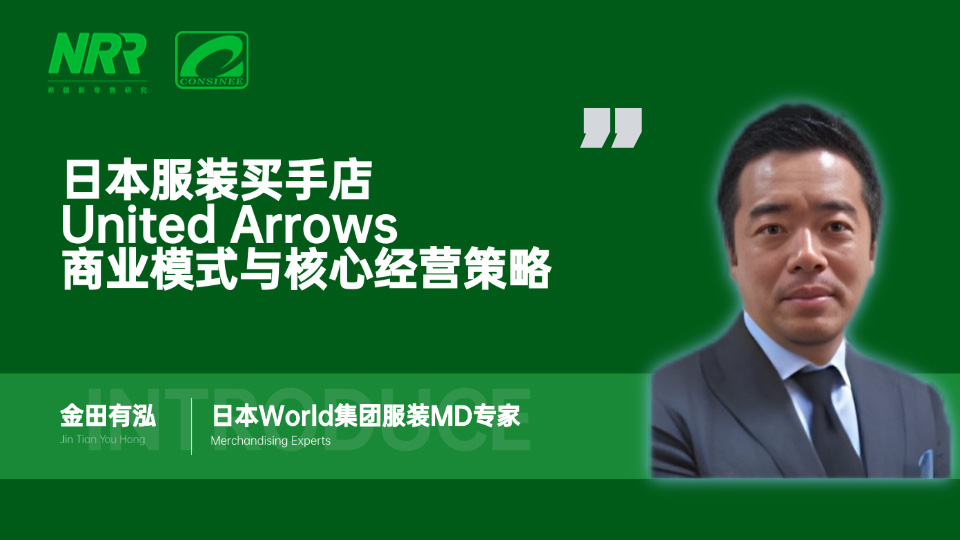 当前中国90%以上服装中小型买手组货店,受困于核心竞争力不足、品牌化滞后、PB商品开发弱等问题,转型需求迫切。而金田有弘老师是日本第二代服装MD(商品企划)资深专家,已连续二十余年为日本及海外的百货店、零售商、服装公司等提供MD咨询服务,还担任日本文化服装学院客座讲师,早稻田大学等机构专家委员,培养出超过4000位MD专业人才。United Arrows在日本时尚版图中也占据着极为重要的位置,是日本最大的复合品牌店运营商。此次康赛妮上海中心邀请到金田有弘老师亲临现场,无疑为中国零售业带来一场兼具理论与实践价值的知识盛宴。