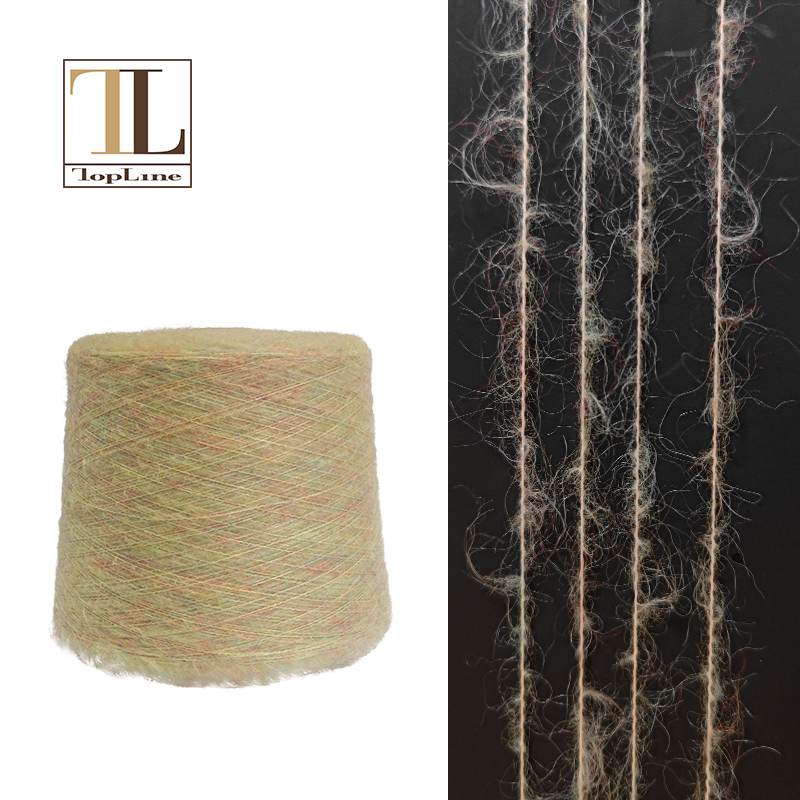 纱线名称:VELOUR 纱线成分:NM1/12.5 34%幼马海毛34%羊毛27%聚酰纤维5%弹性纤维 纱线类型:拉毛纱 适用针型:5/7针 单根进纱 最小起订量:库存色1KG起订 客户色:起订量100KG起订,可做30KG绞纱染色 库存颜色:48色库存色 色彩搭配:花色 纱线风格:手感丰富、毛感足、弹力好、有仿毛呢面料的效果。 适合产品:秋冬毛衫、外套,仿皮披肩以及制作毡缩效果面料。