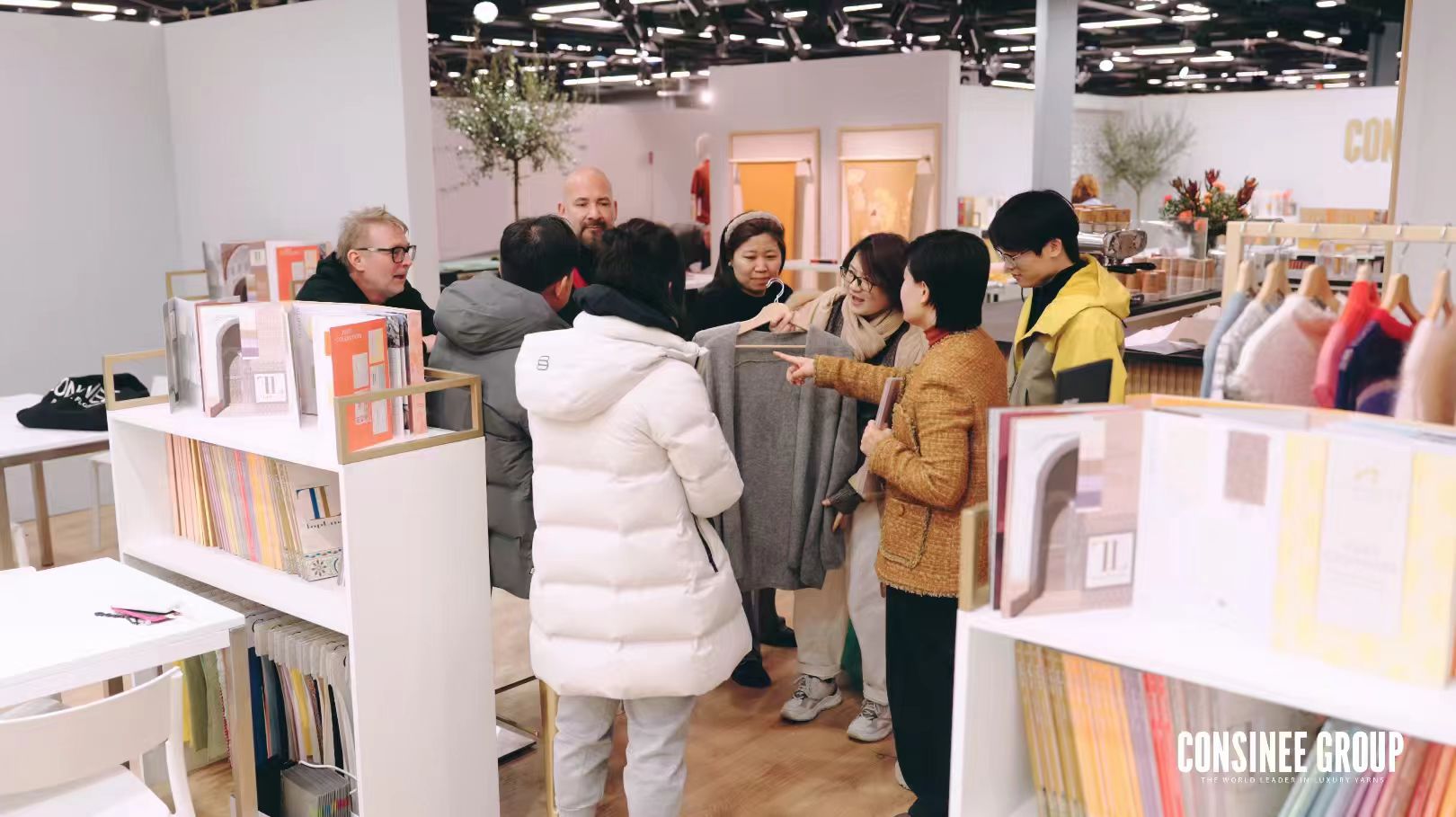 现场互动交流正精彩上演,简约大气的展位设计搭配鲜明的可持续理念,已吸引全球各地客商与设计师纷纷驻足。康赛妮专业团队已整装就位,热忱期待与各界伙伴深入洽谈,细致解读27春夏系列的工艺亮点与应用场景,分享可持续纱线的创新研发成果。