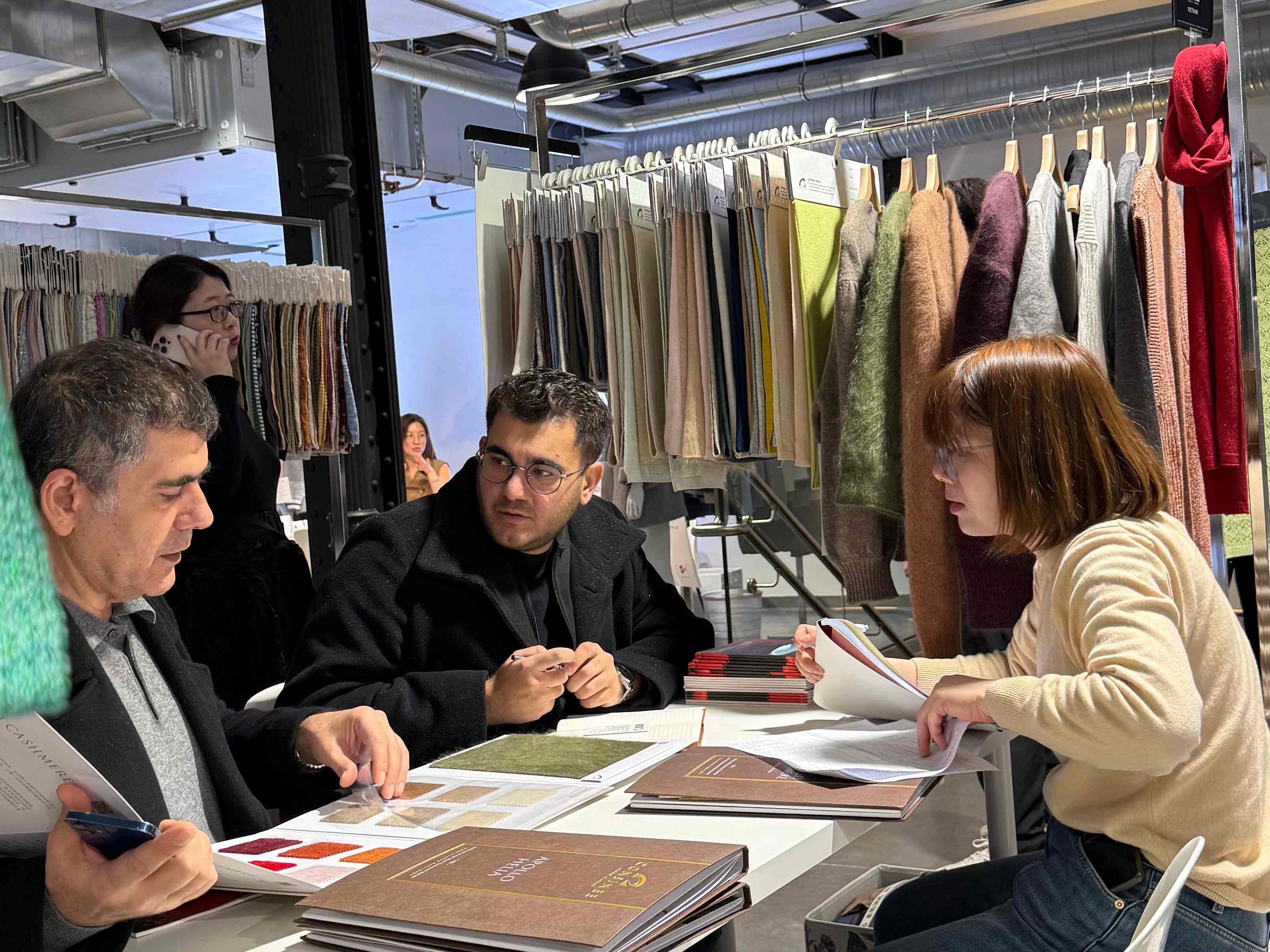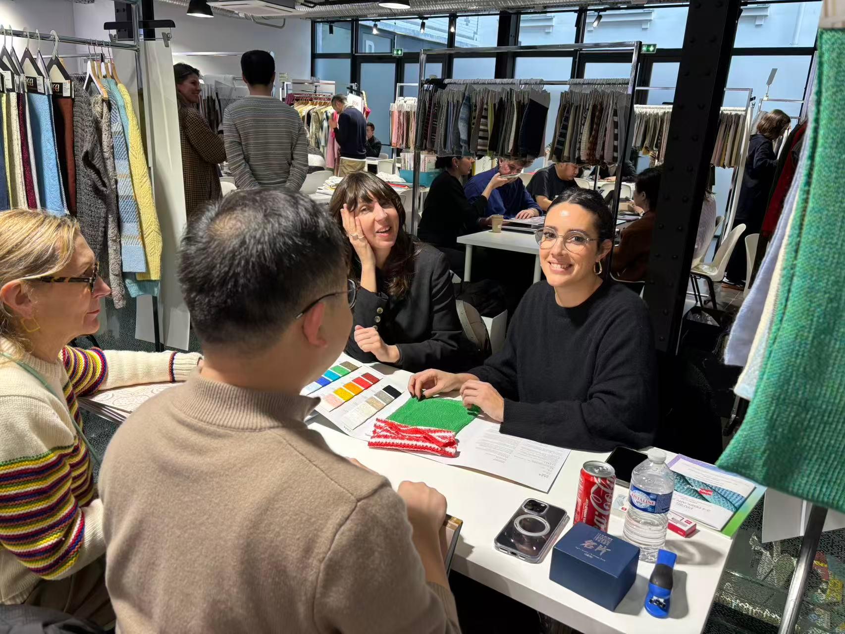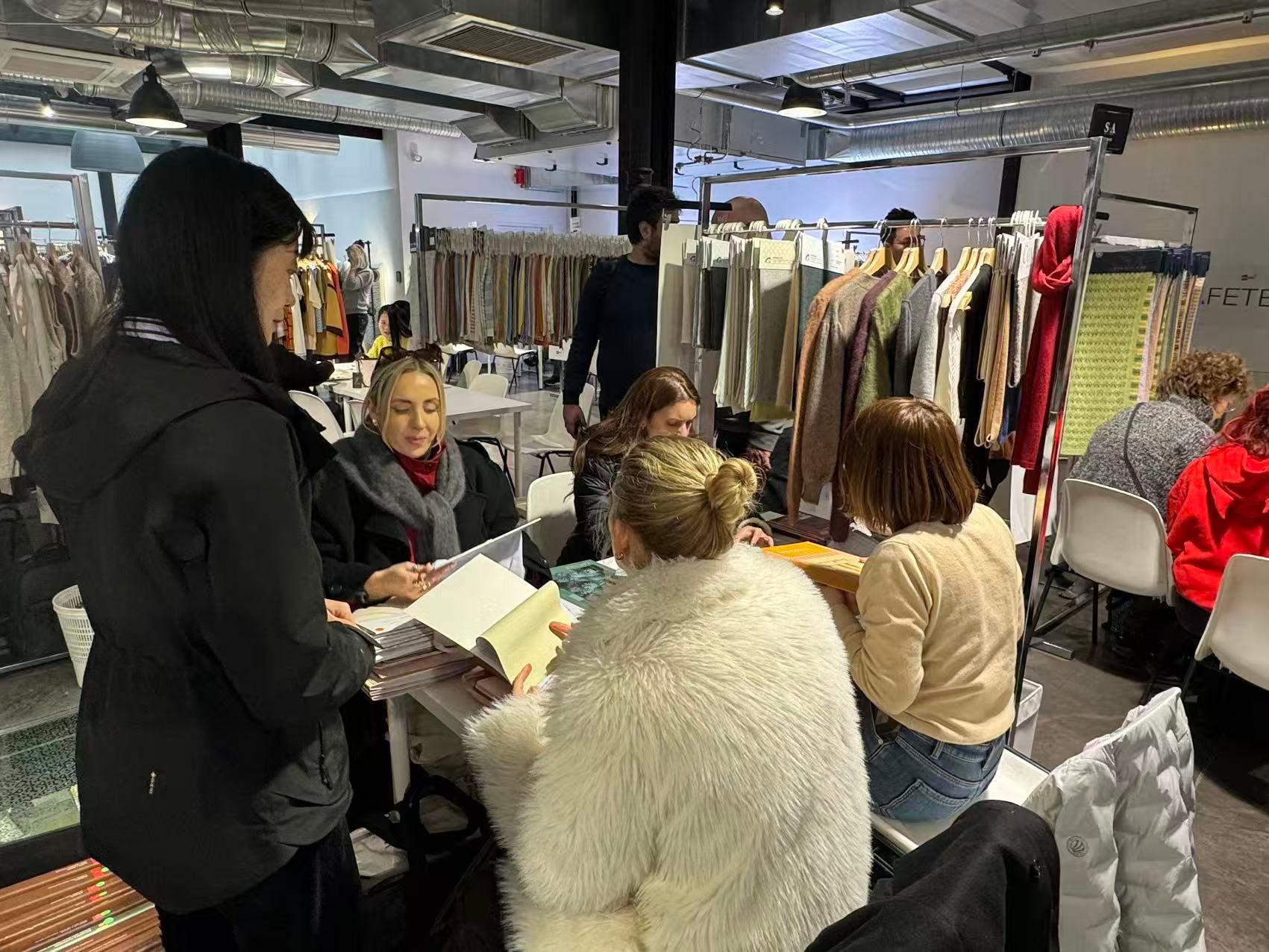 本次巴黎展会上,康赛妮以“自然灵感与科技匠心”为主题,集中呈现了系列顶级天然纤维原料,更带来了27SS的多款创新产品,吸引众多国际知名设计师、奢侈品牌代表及顶级买手驻足品鉴与深入洽谈。我们通过纱样的细腻触感、色彩的优雅演绎以及技术的前沿解析,向欧洲市场深度传递了康赛妮“从原料到成品”的卓越品质把控与全链条服务理念。