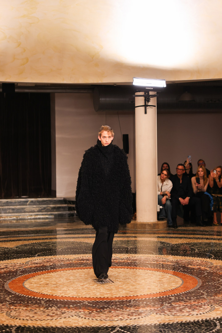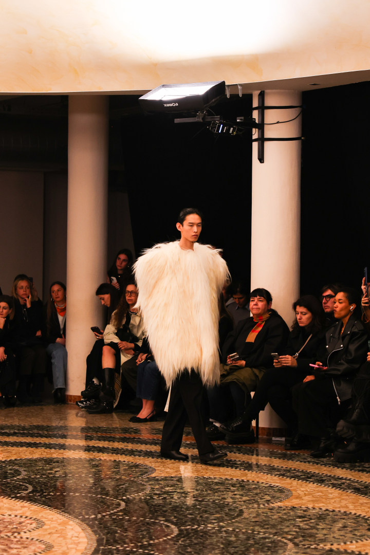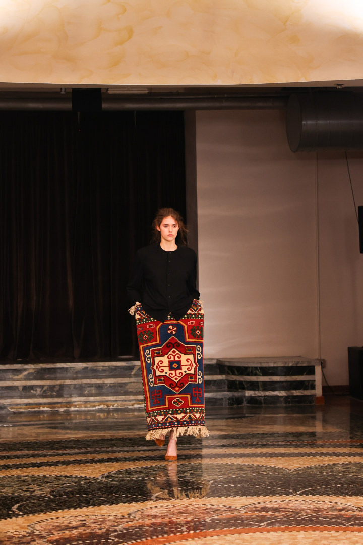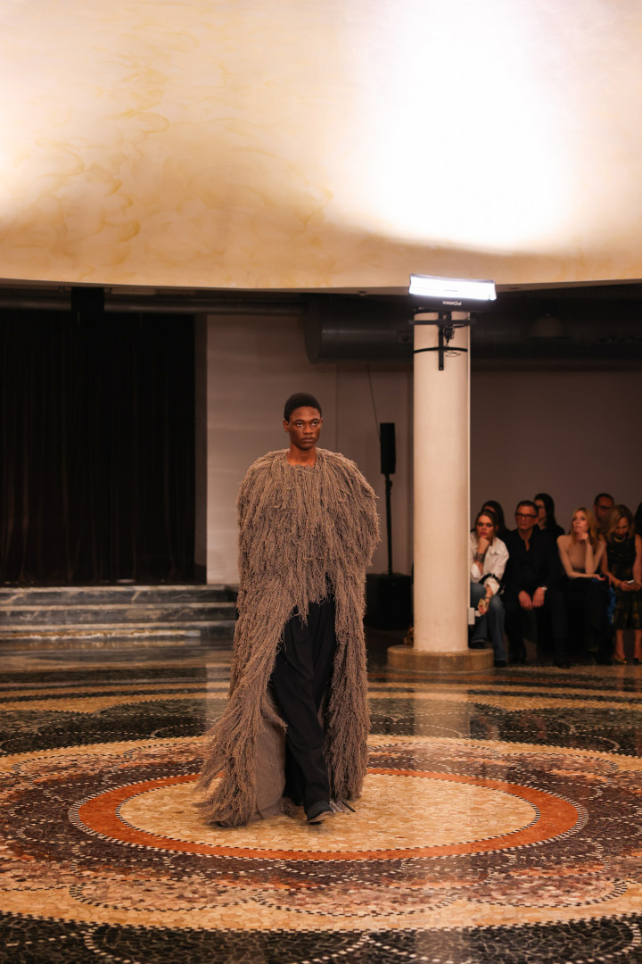 新锐设计师品牌INSTITUTION,由本届康赛妮Pitti Uomo合作设计师Galib Gassanof创立,以高级时装工艺、街头文化与社会思考构筑独特风格。此次,康赛妮再度与其深度联名,用先锋纱线语言,融入部分非遗黎锦元素,诠释当代时尚的精神内核。