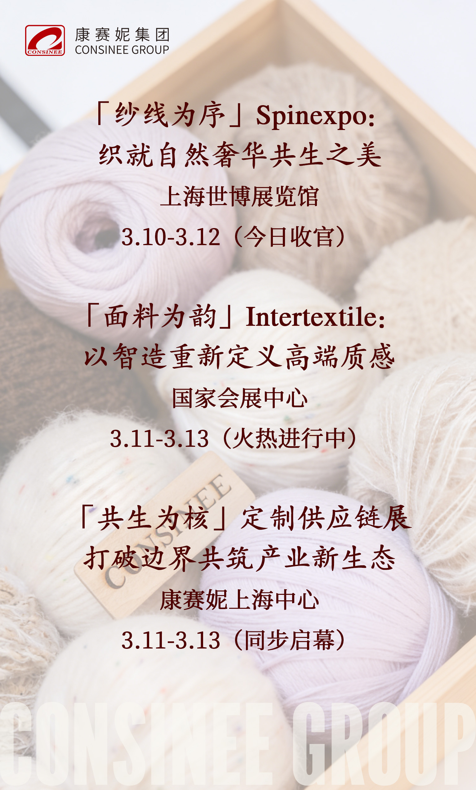 一脉相承的匠心品质,各具特色的时尚呈现。SPINEXPO今日收官,Intertextile与“无界·共生”定制供应链展仍在火热进行中,期待您亲临现场,与我们携手共赴创新与共赢的时尚之约,为中国纺织注入澎湃力量!