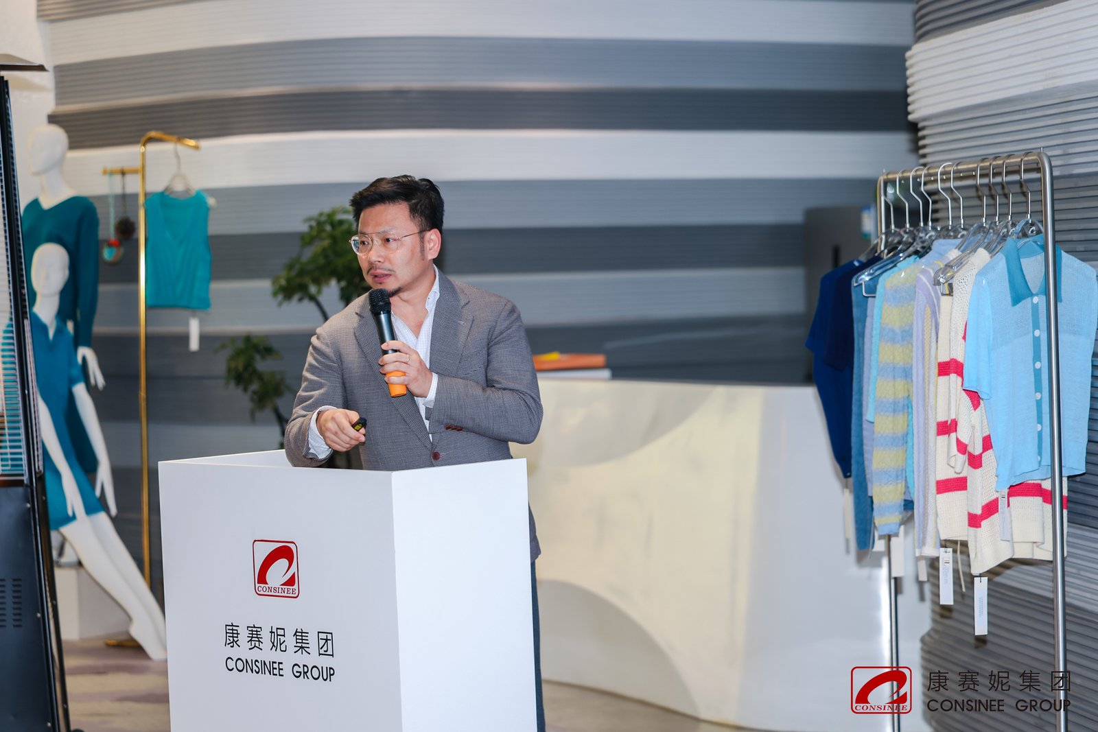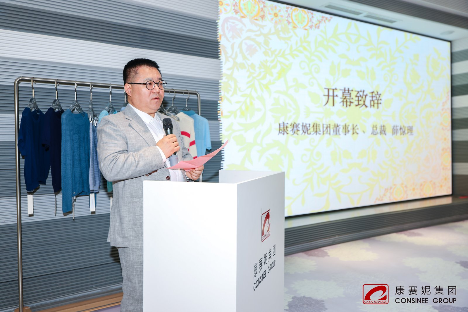 康赛妮集团董事长、总裁薛惊理发表开幕致辞,以“无界共生”为核心理念,结合集团二十余年深耕实践,分享了康赛妮在高端纺织领域的深耕之路与未来布局,阐述了打通全品类定制供应链、引领行业走向全球价值链顶端的发展愿景,传递了中国纺织企业面向世界、向“新”而行的坚定信心。