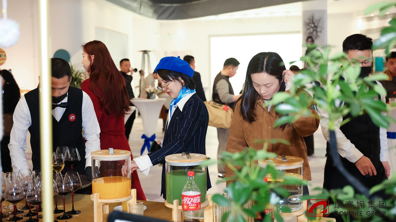 分享会结束后,嘉宾们自由参观康赛妮上海中心,近距离感受高端纺织的匠心与质感。夜幕降临,一场格调雅致的酒会晚宴温情启幕,各界嘉宾于轻松愉悦的氛围中举杯畅谈,尽享匠心与艺术交融的美好时光。