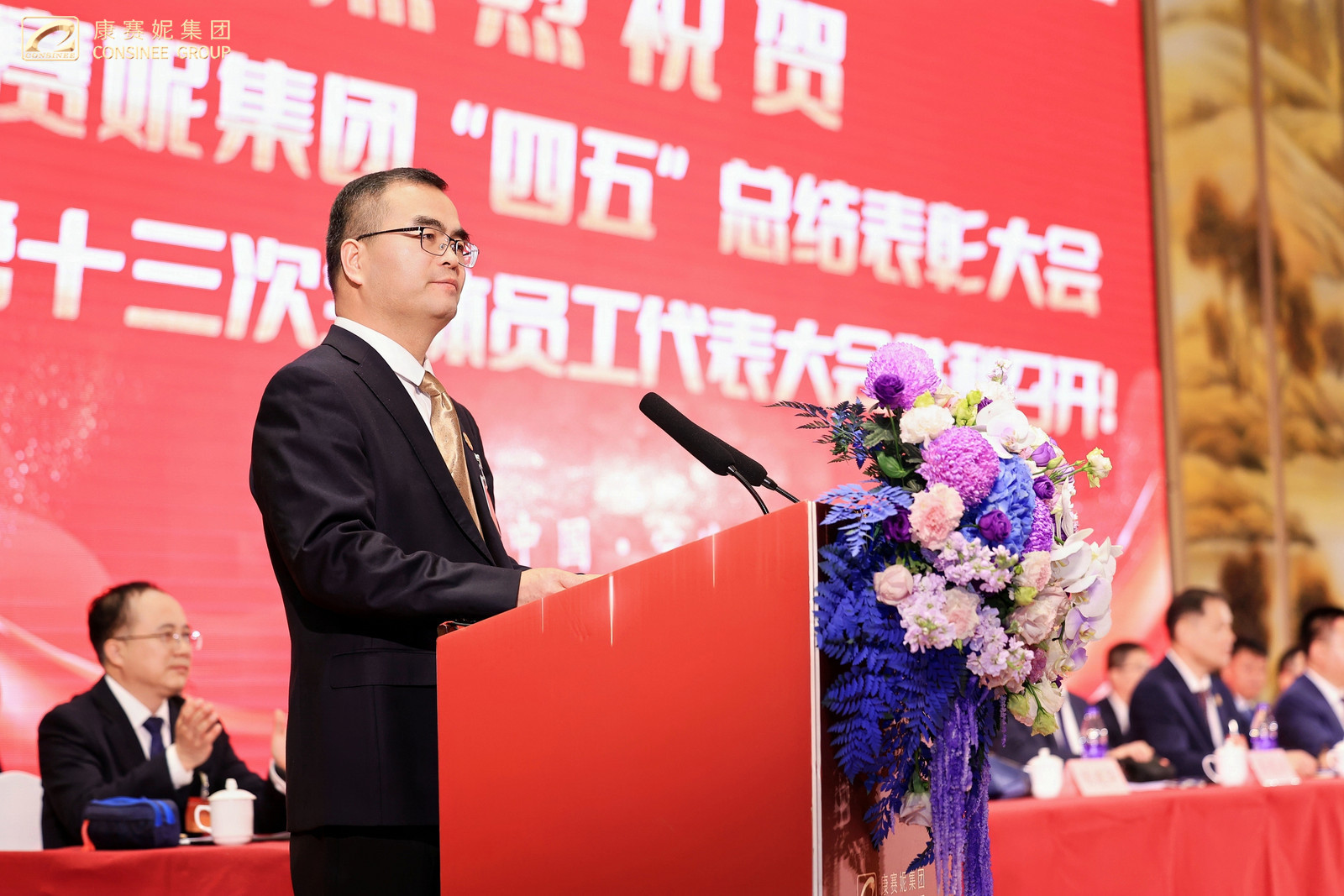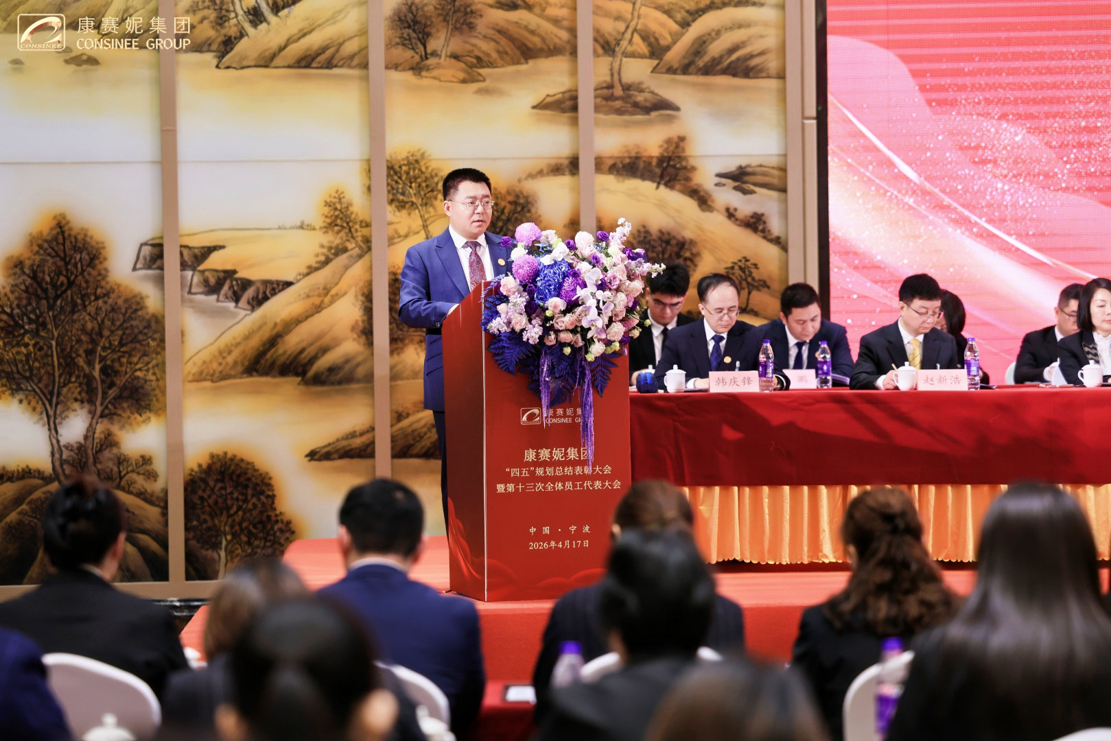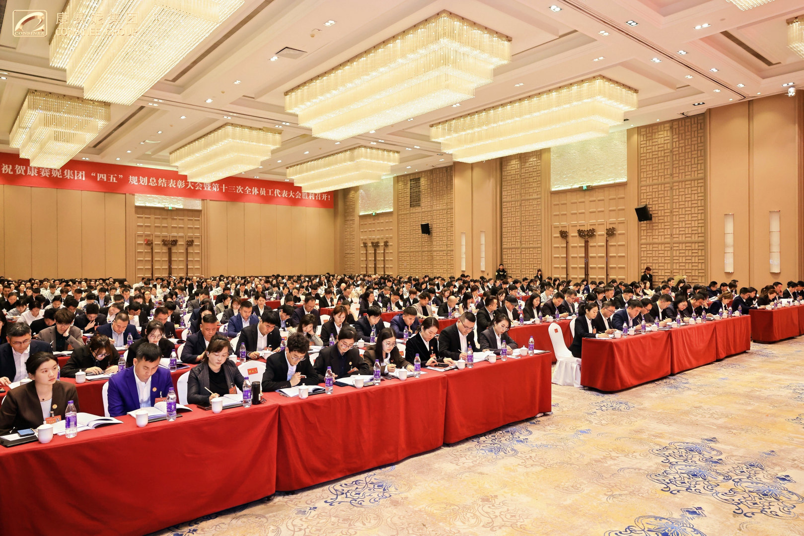 春启新程,功耀华章!2026年4月17日上午,康赛妮集团“四五”规划总结表彰大会暨第十三次全体员工代表大会开幕式在柏林环球酒店隆重召开!大会以“承四五辉煌·启五五华章,乘势而上开创康赛妮集团高质量发展新局面”为主题,来自集团总部各职能部门、各生产分厂班长以上管理干部、新进大学生代表、老员工代表,来自集团各驻外分支机构列席代表和特邀代表,以及全程参与“四五”规划的建设者们共计五百余人,共忆峥嵘岁月,共庆发展硕果,共绘奋进新篇,以昂扬之姿,开启集团高质量发展的全新征程!