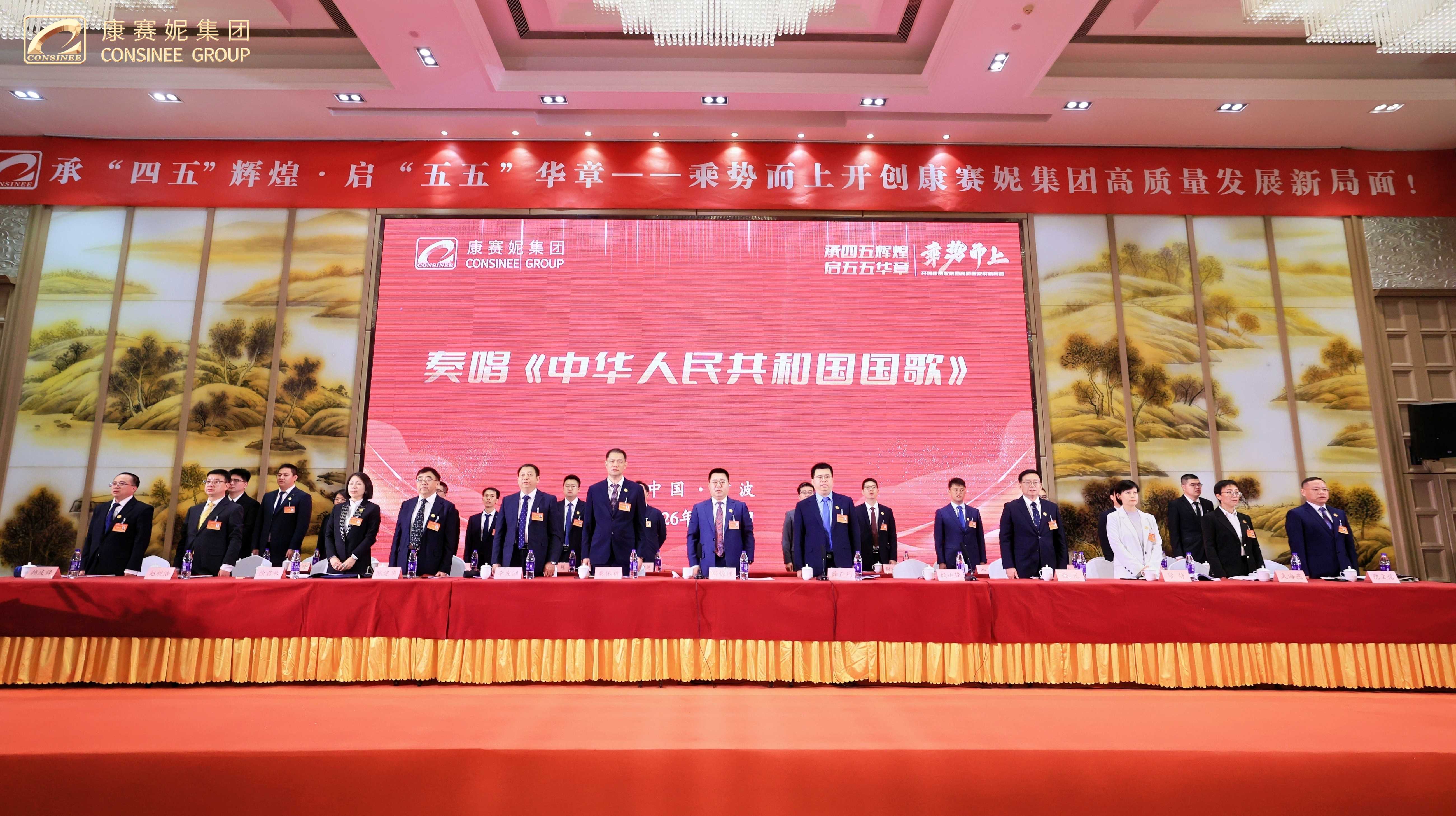 大会在集团副总裁兼行政总经理殷小锋的主持下拉开帷幕,一声“大会开幕”的宣告响彻全场、振奋人心。雄壮的《中华人民共和国国歌》缓缓奏响,全体参会人员肃立齐唱,歌声嘹亮、气势磅礴,凝聚起康赛妮人同心同向、奋勇争先的磅礴力量,也彰显了企业扎根中国、逐梦全球的责任与担当。