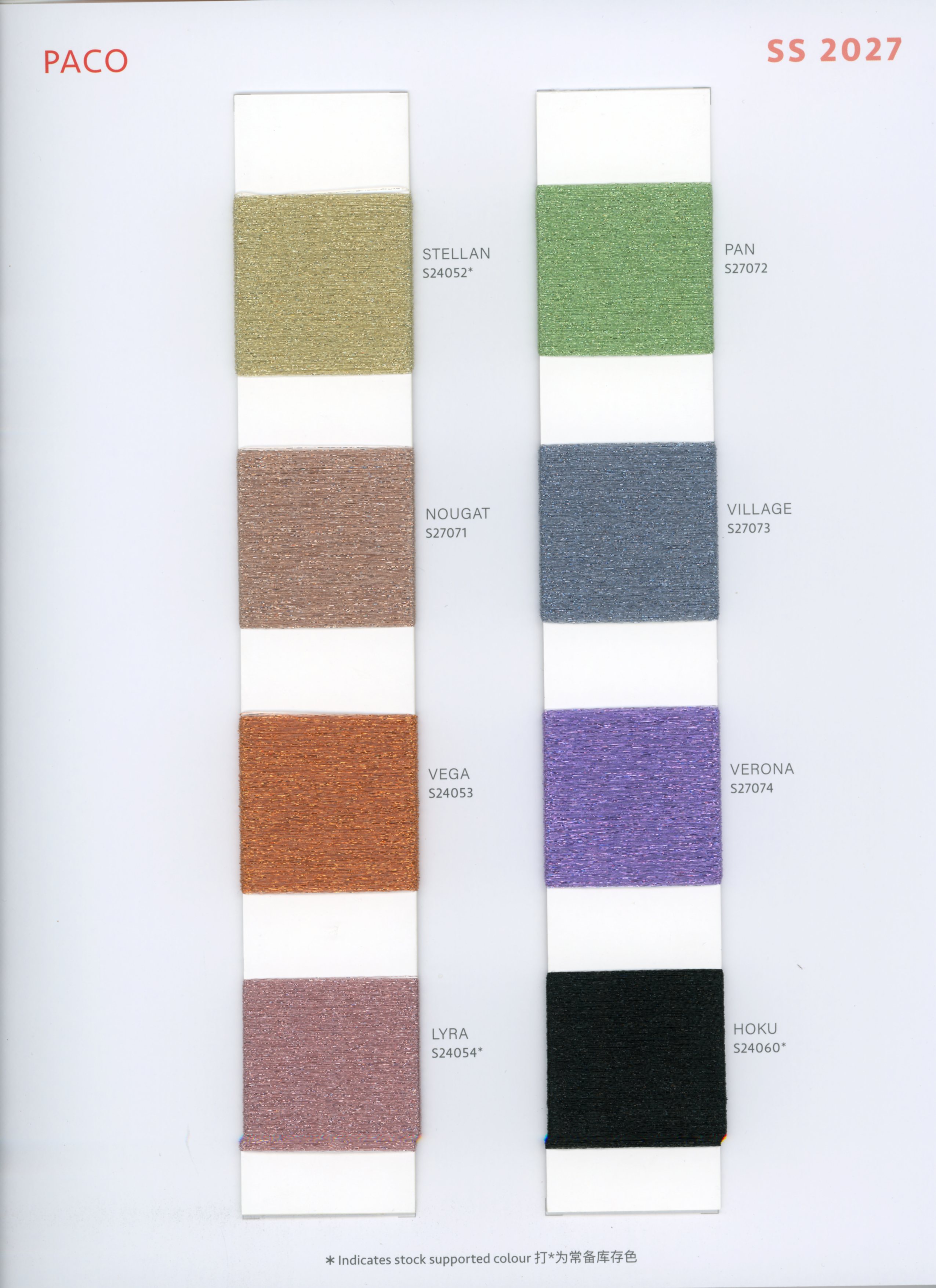 PACO是一款轻薄的葱爽纱线,同色提花、金银丝光色的明暗对比营造轻奢日常及派对氛围。薄纱表现强烈的女性化风格,层搭的蓬松质感和透气量感纹理突显朦胧又梦幻的少女浪漫,浓郁的色调则更显性感与神秘气息。