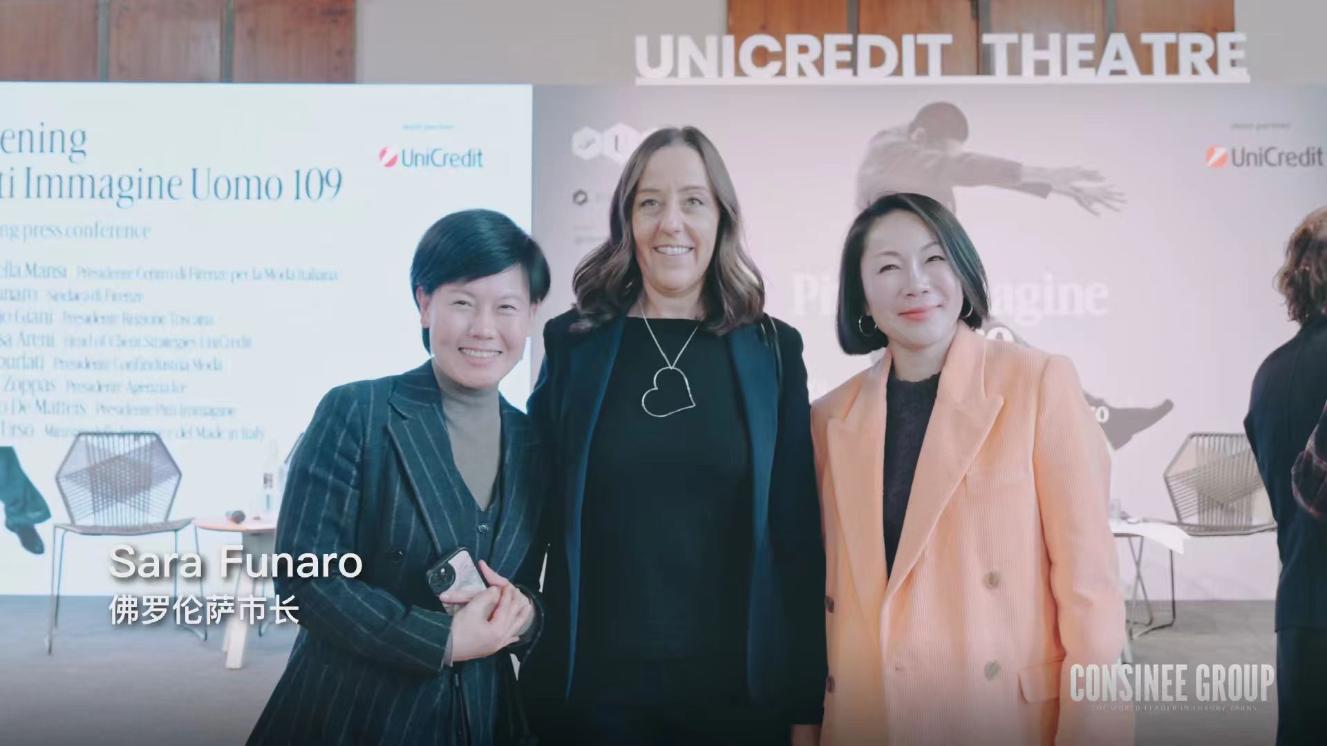 作为全球男装时尚的殿堂级盛会,PITTI UOMO的开幕式向来是行业思想的交汇地。康赛妮受邀出席,与托斯卡纳大区主席EUGENIO GIANI、佛罗伦萨市长Sara Funaro、PITTI IMMAGINE主席Antonio de Matteis、意大利企业与制造部部长Adolfo Urso等政商时尚界领军人物深度交流,将品牌在可持续时尚领域的实践与思考,融入国际对话的核心语境。