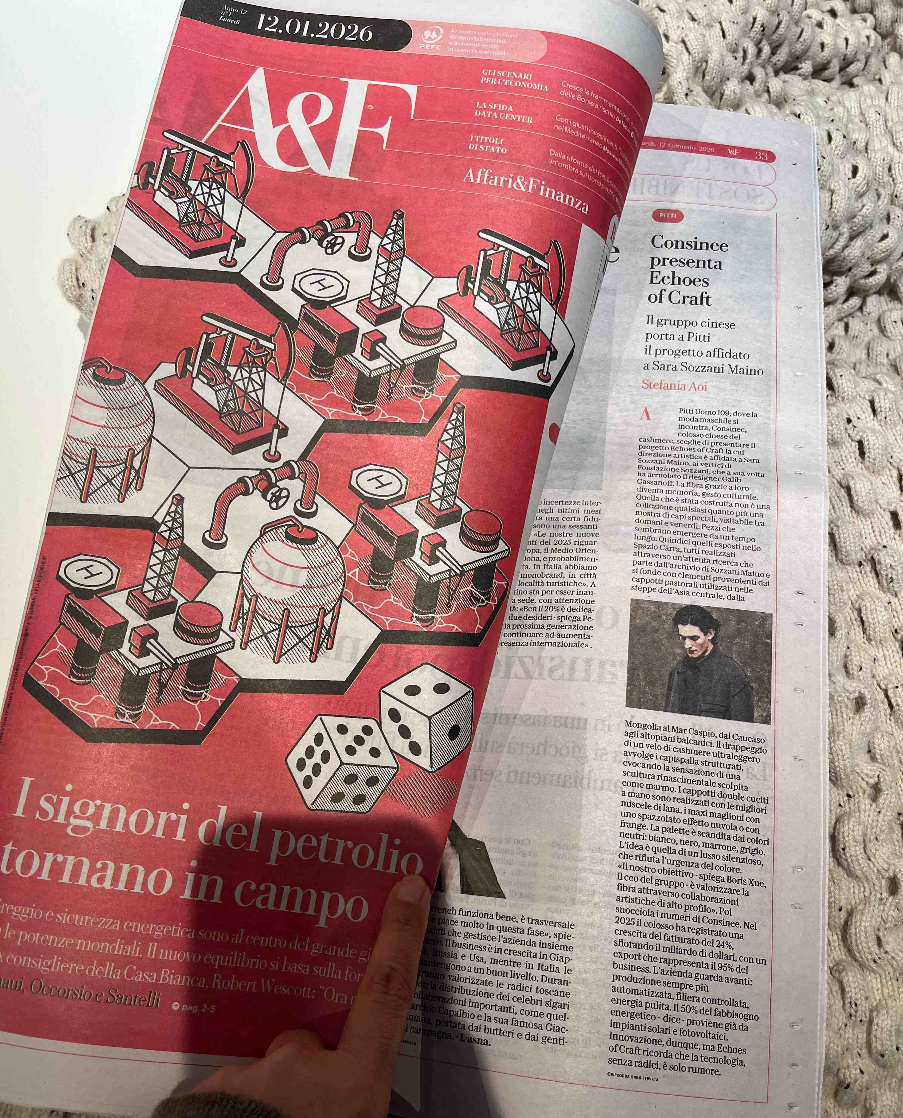 集团展位凭借兼具品质感与设计感的陈列,一举成为全场焦点,热度居高不下。权威媒体的争相聚焦,更将这份火爆氛围推向高潮。PITTI UOMO官方媒体、意大利 La Repubblica报纸、意大利财经报等国际平台,以及华丽志、ELLE MEN等国内时尚权威,纷纷将镜头对准康赛妮,深度解读品牌的可持续实践。