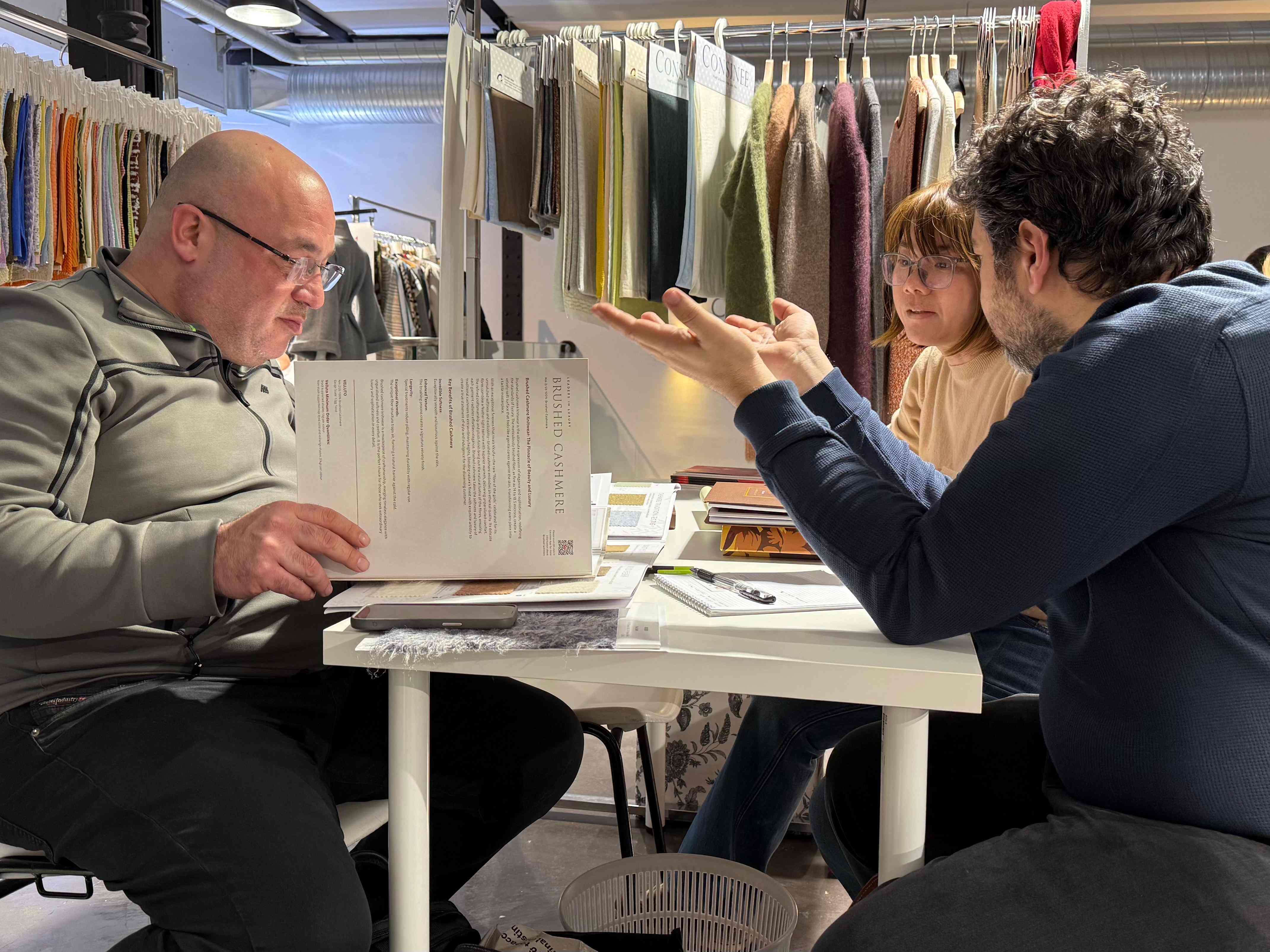 本次巴黎展会上,康赛妮以“自然灵感与科技匠心”为主题,集中呈现了系列顶级天然纤维原料,更带来了27SS的多款创新产品,吸引众多国际知名设计师、奢侈品牌代表及顶级买手驻足品鉴与深入洽谈。我们通过纱样的细腻触感、色彩的优雅演绎以及技术的前沿解析,向欧洲市场深度传递了康赛妮“从原料到成品”的卓越品质把控与全链条服务理念。