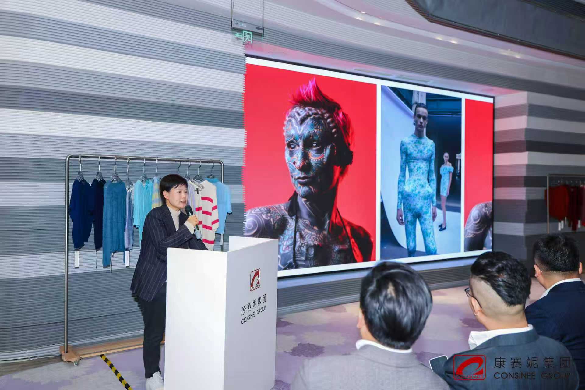康赛妮集团董事长、总裁薛惊理发表开幕致辞,以“无界共生”为核心理念,结合集团二十余年深耕实践,分享了康赛妮在高端纺织领域的深耕之路与未来布局,阐述了打通全品类定制供应链、引领行业走向全球价值链顶端的发展愿景,传递了中国纺织企业面向世界、向“新”而行的坚定信心。