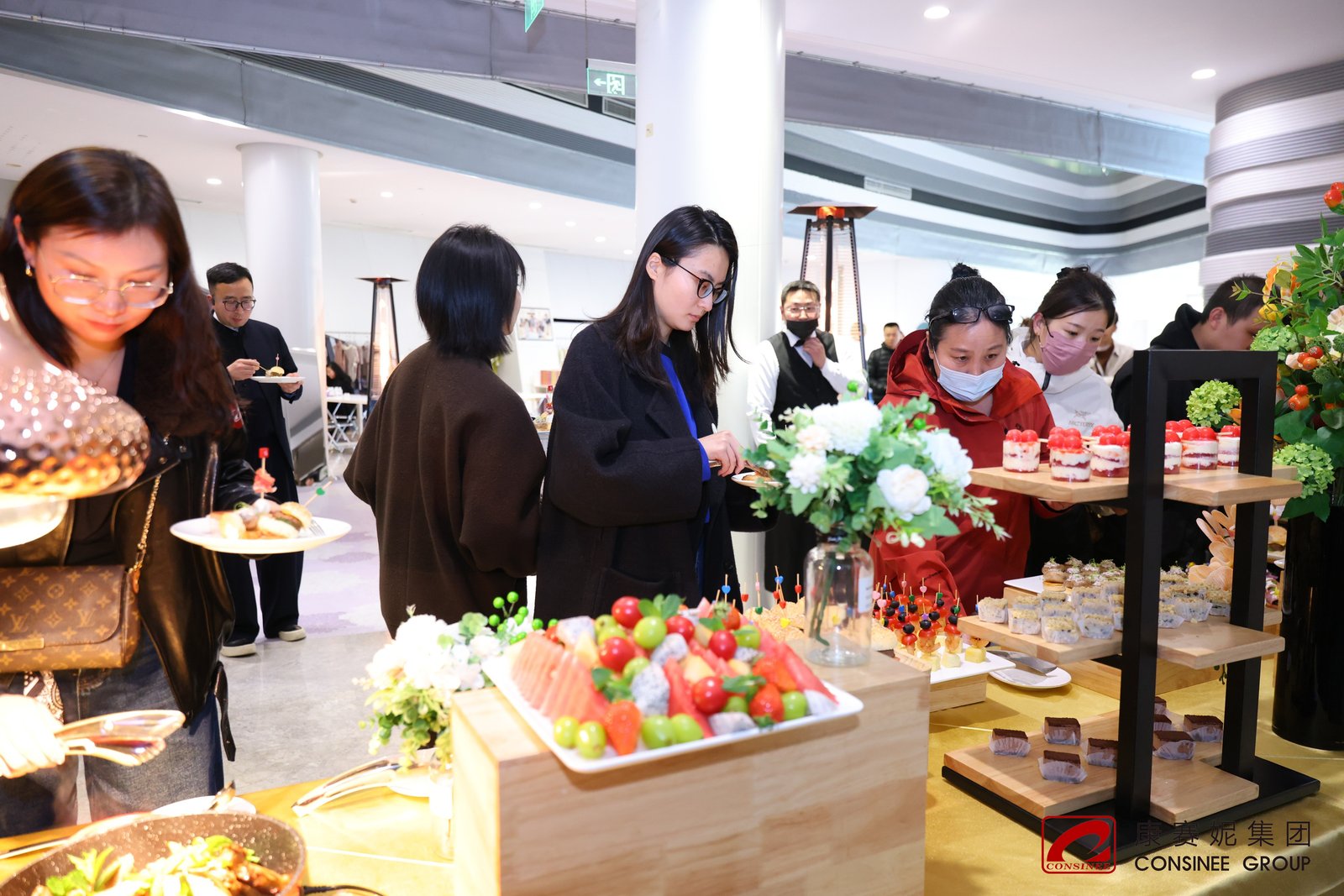 分享会结束后,嘉宾们自由参观康赛妮上海中心,近距离感受高端纺织的匠心与质感。夜幕降临,一场格调雅致的酒会晚宴温情启幕,各界嘉宾于轻松愉悦的氛围中举杯畅谈,尽享匠心与艺术交融的美好时光。