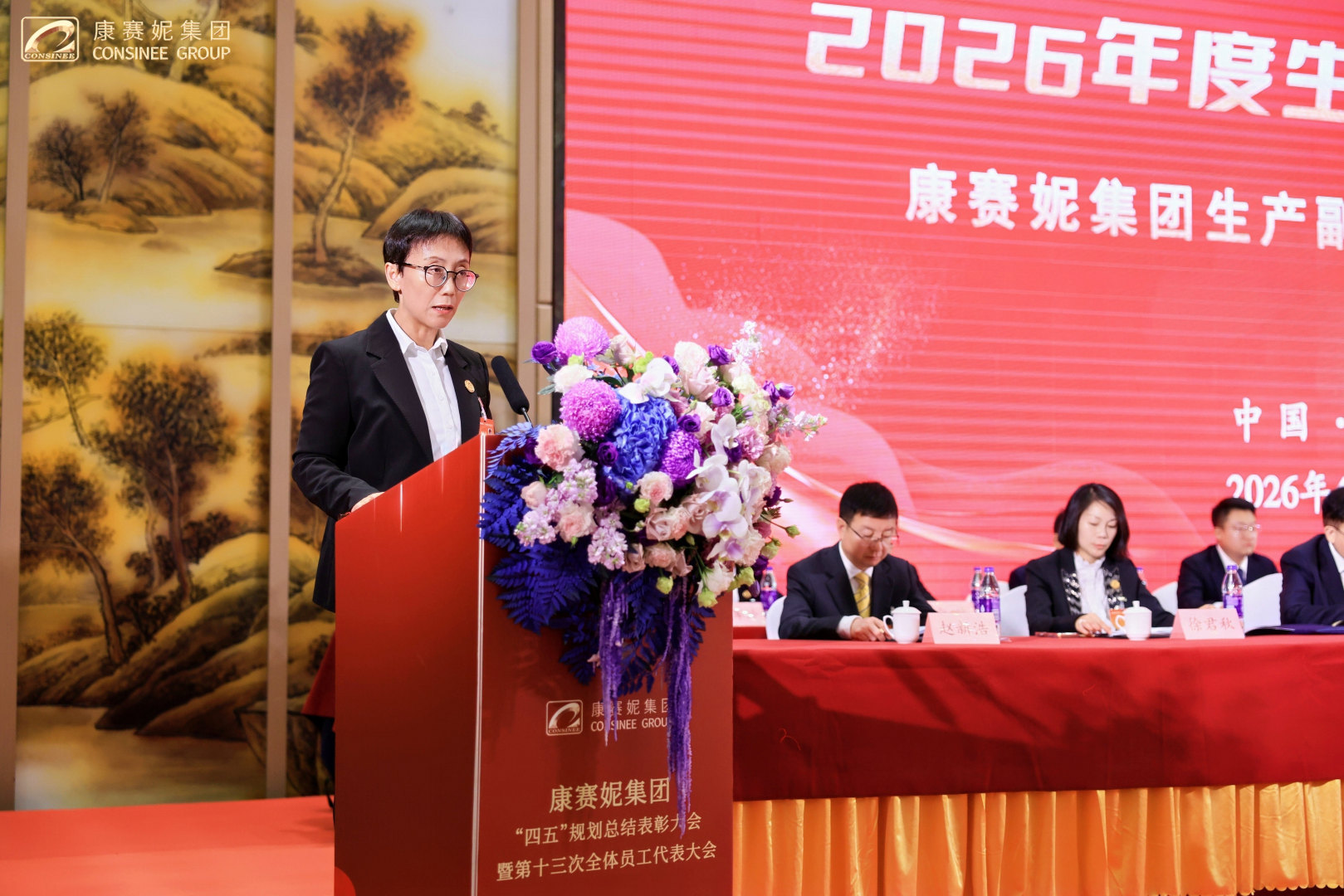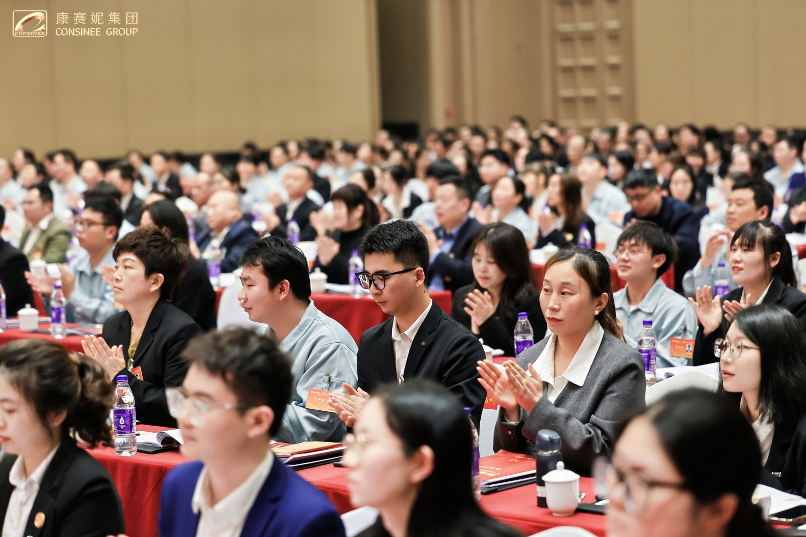 春启新程,功耀华章!2026年4月17日上午,康赛妮集团“四五”规划总结表彰大会暨第十三次全体员工代表大会开幕式在柏林环球酒店隆重召开!大会以“承四五辉煌·启五五华章,乘势而上开创康赛妮集团高质量发展新局面”为主题,来自集团总部各职能部门、各生产分厂班长以上管理干部、新进大学生代表、老员工代表,来自集团各驻外分支机构列席代表和特邀代表,以及全程参与“四五”规划的建设者们共计五百余人,共忆峥嵘岁月,共庆发展硕果,共绘奋进新篇,以昂扬之姿,开启集团高质量发展的全新征程!